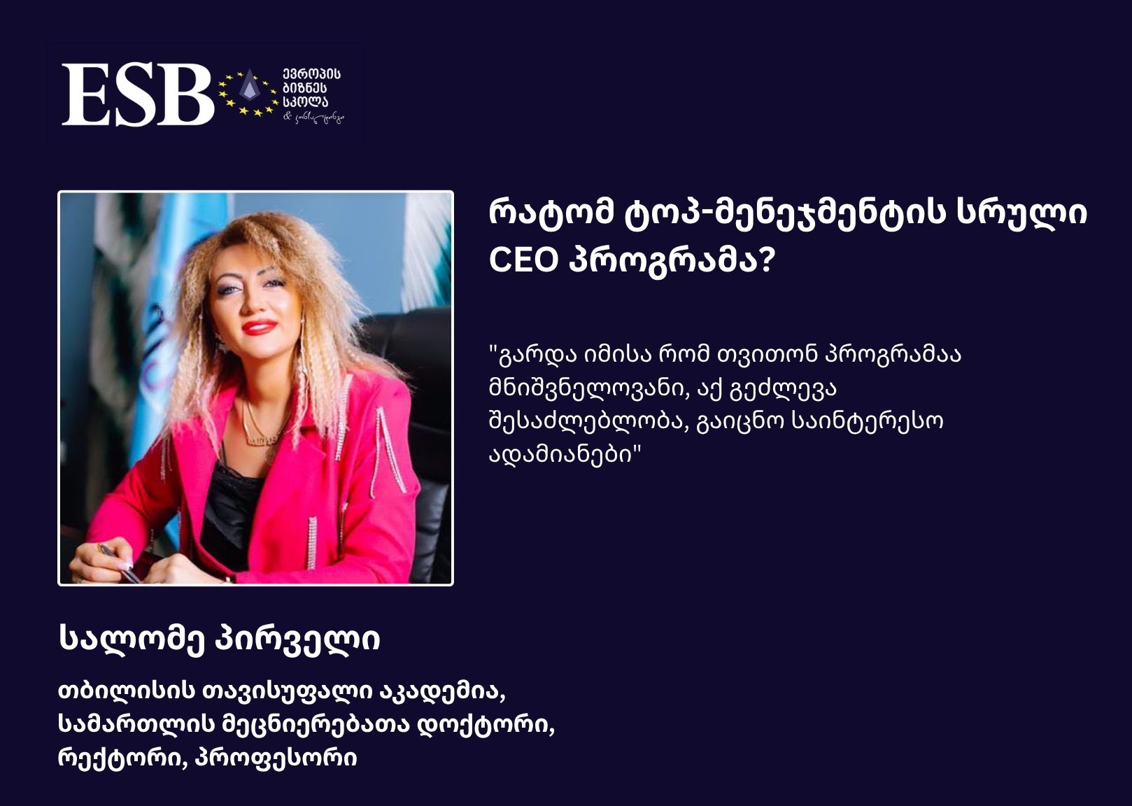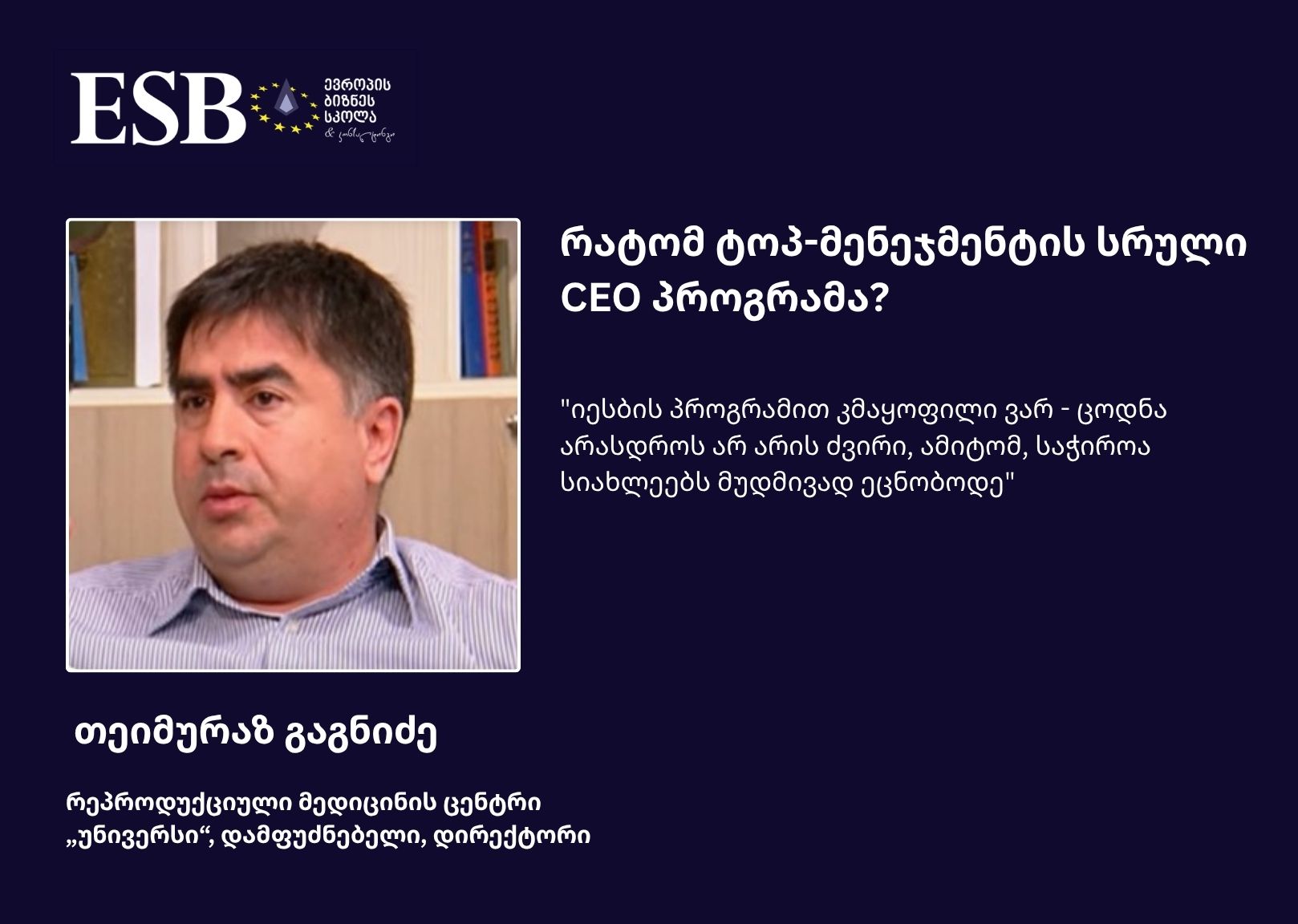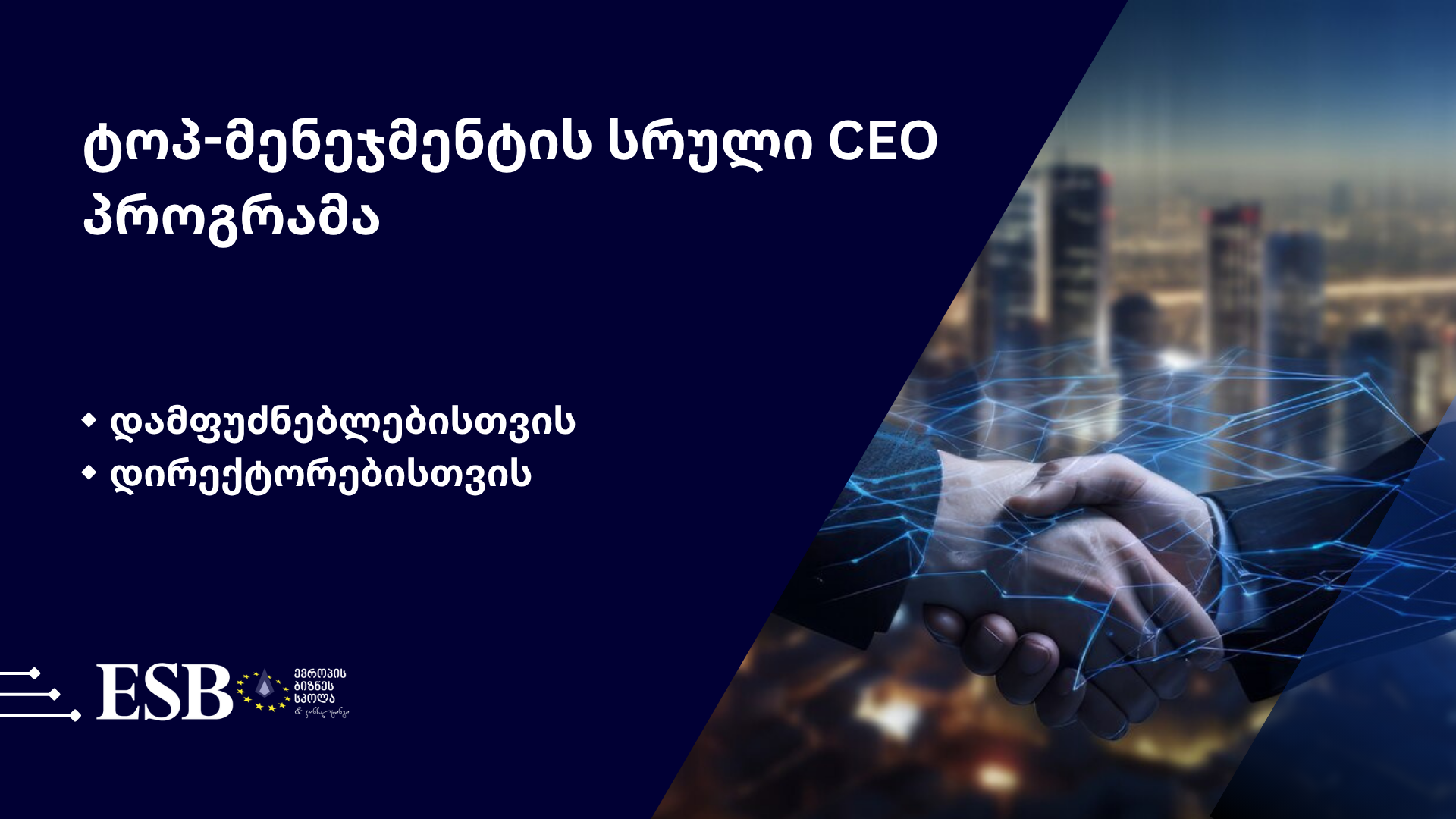 ევროპის ბიზნეს სკოლა გთავაზობთ CEO პროგრამებს, ტოპ-მენეჯერებისა და კომპანიების დამფუძნებლებისათვის