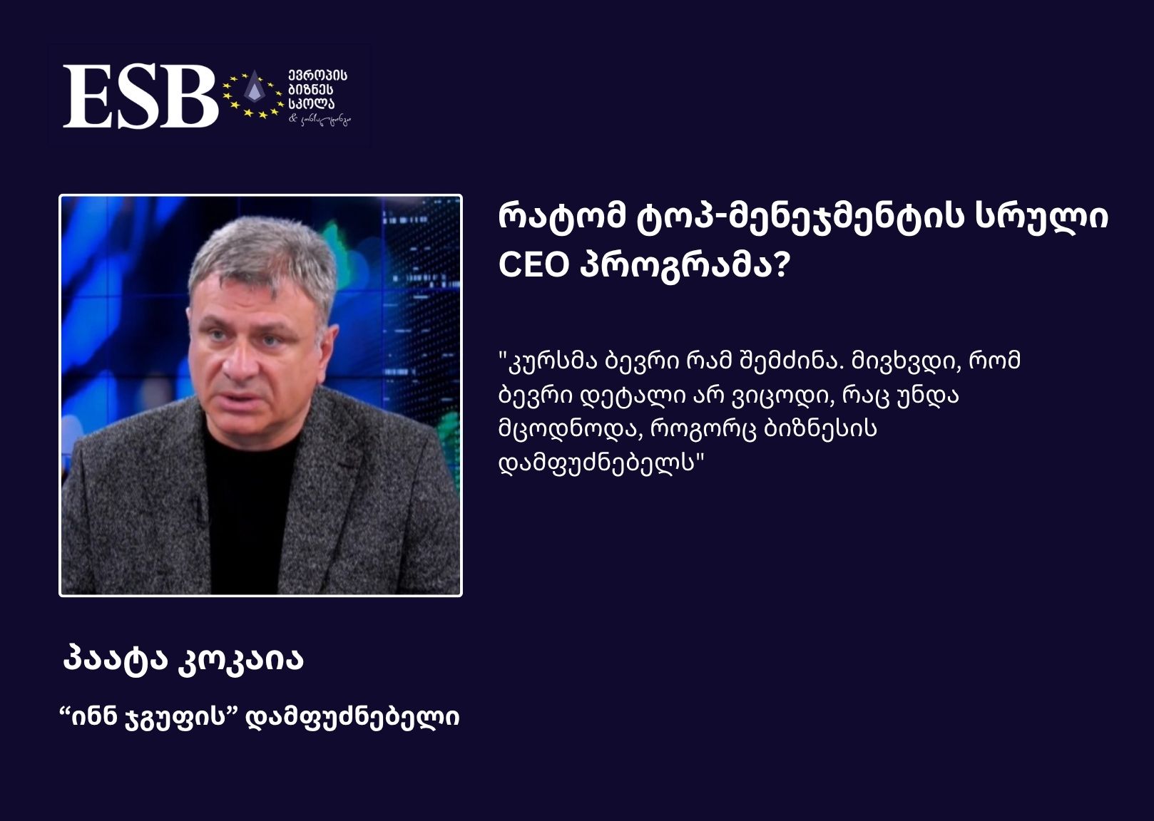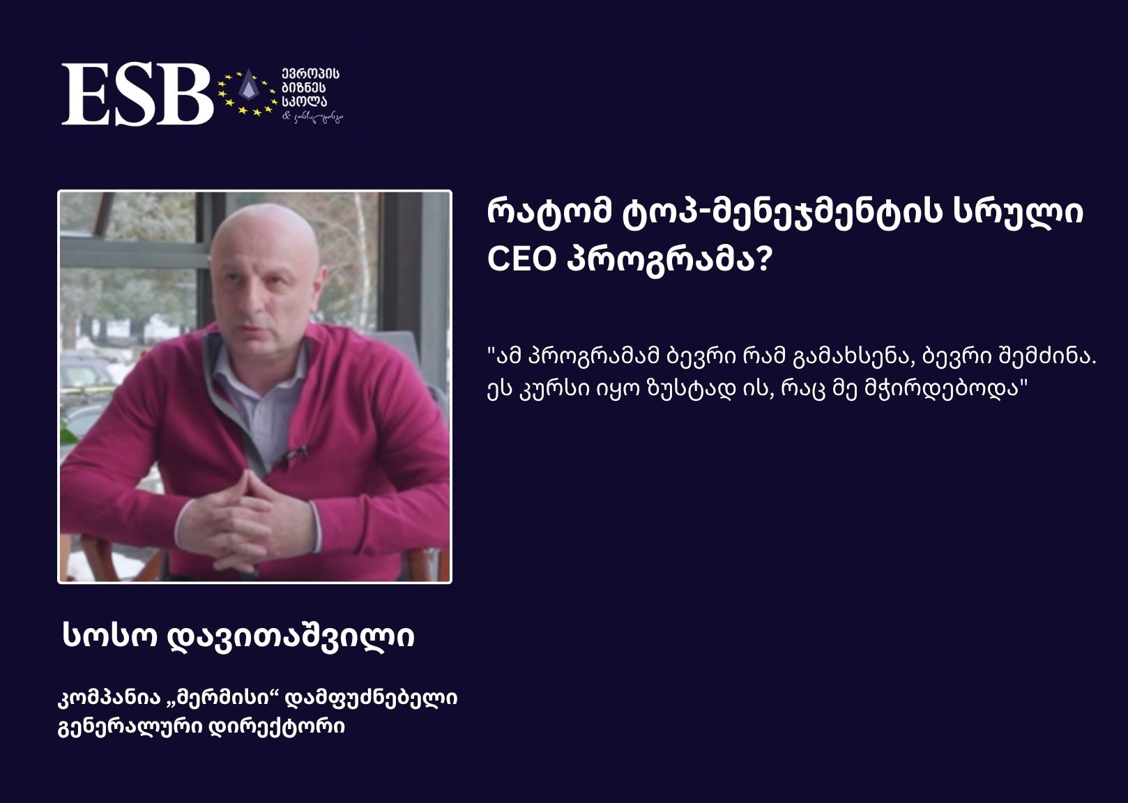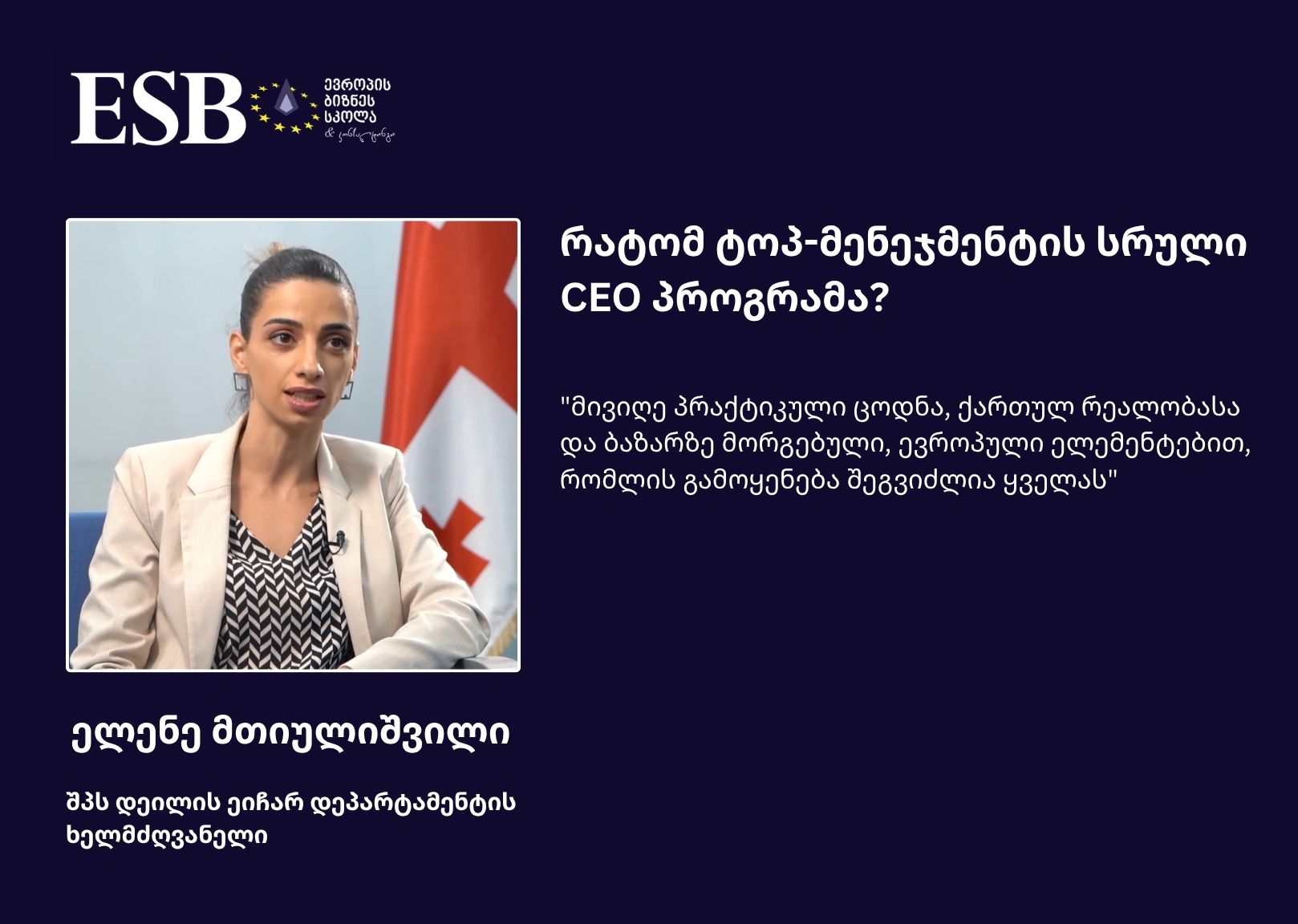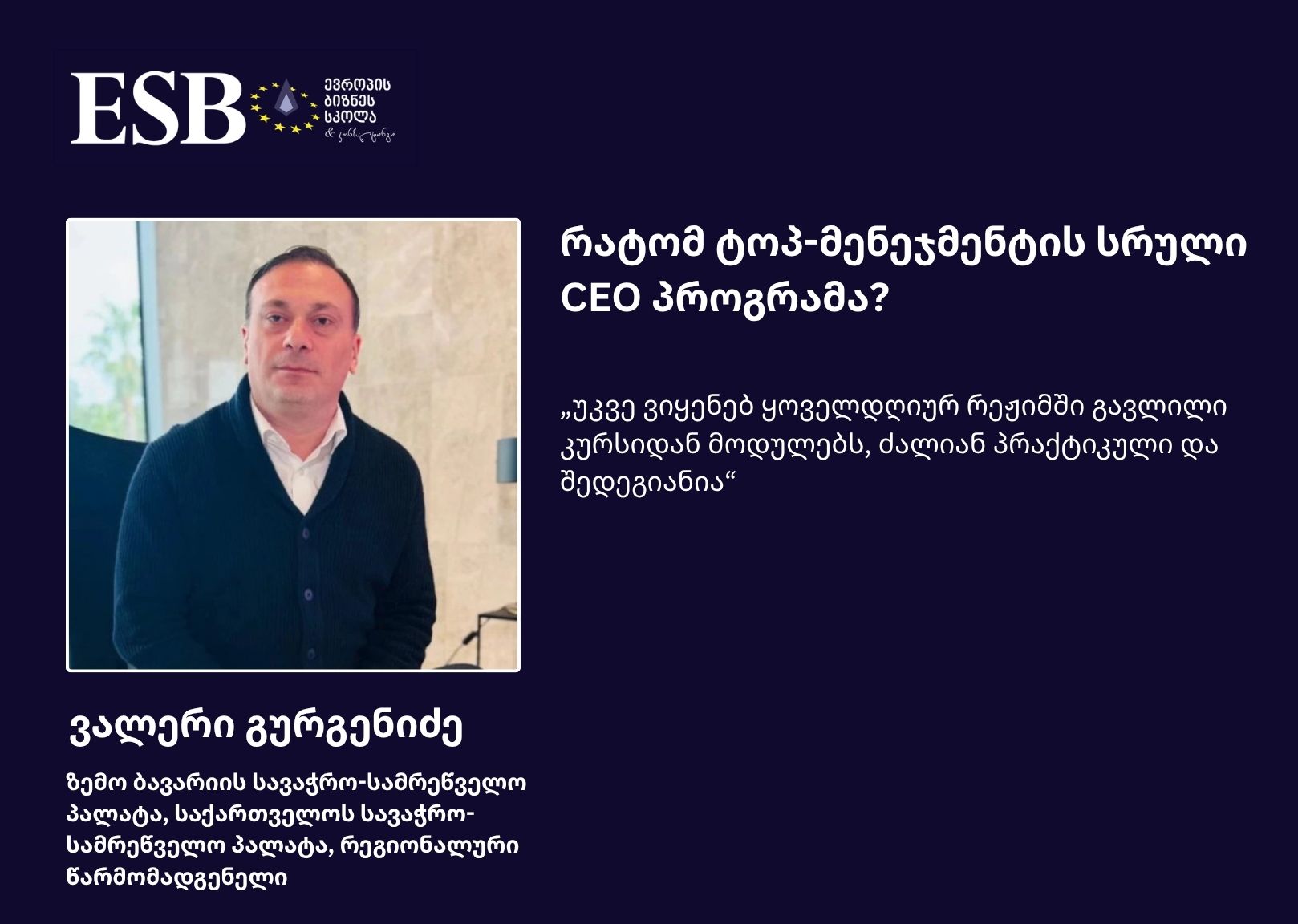 ევროპის ბიზნეს სკოლა გთავაზობთ CEO პროგრამებს, ტოპ-მენეჯერებისა და კომპანიების დამფუძნებლებისათვის
